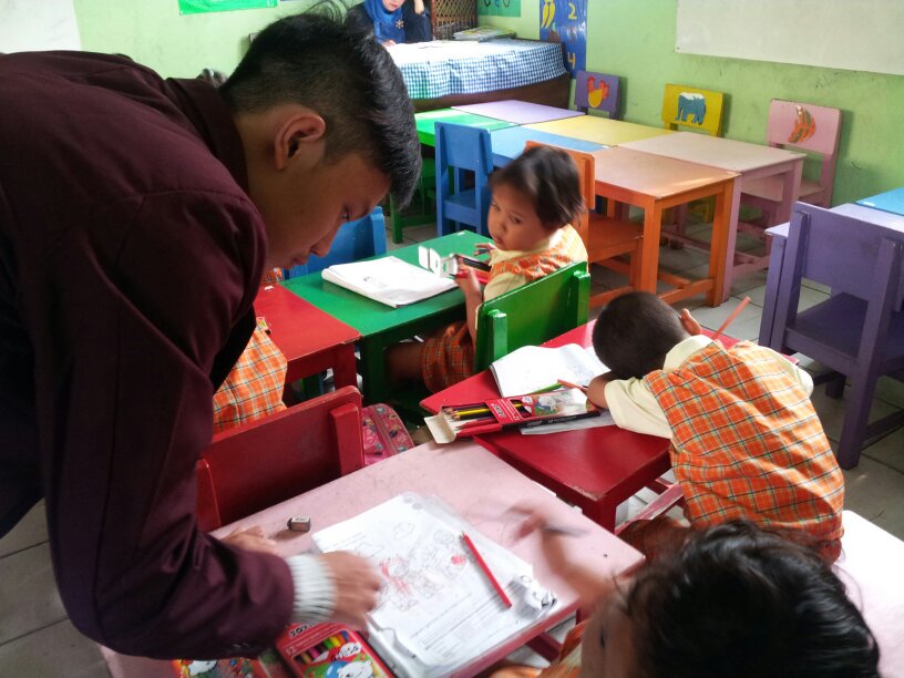 Selagi anak-anak mewarnai, kami membantu mengawasi dan menyemangati anak-anak untuk membubuhkan warna dalam buku mewarnainya, agar prosesi mewarnai dapat terselesaikan dengan efisien dan warna yang rapi. Anak-anak dihimbau untuk memberi warna yang kreatif, dan mewarnainya dengan penuh, jangan sampai keluar garis dan masih ada bagian yang belum diberi warna. Itulah gunanya kami mengawasi selagi membimbing para murid sementara mereka asyik mewarnai.