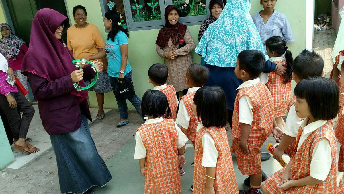 Setelah anak-anak selesai mewarnai, mereka diperbolehkan bermain ke luar kelas. Seiring berjalannya waktu, satu per satu anak-anak mulai meninggalkan kelas karena sudah selesai mewarnai. Begitu murid-murid di dalam kelas sudah tak tersisa, kami pun keluar kelas untuk mengawasi mereka yang sedang asyik bermain di luar kelas. Mereka bermain ayunan, perosotan, jungkat-jungkit, bahkan bermain bola.